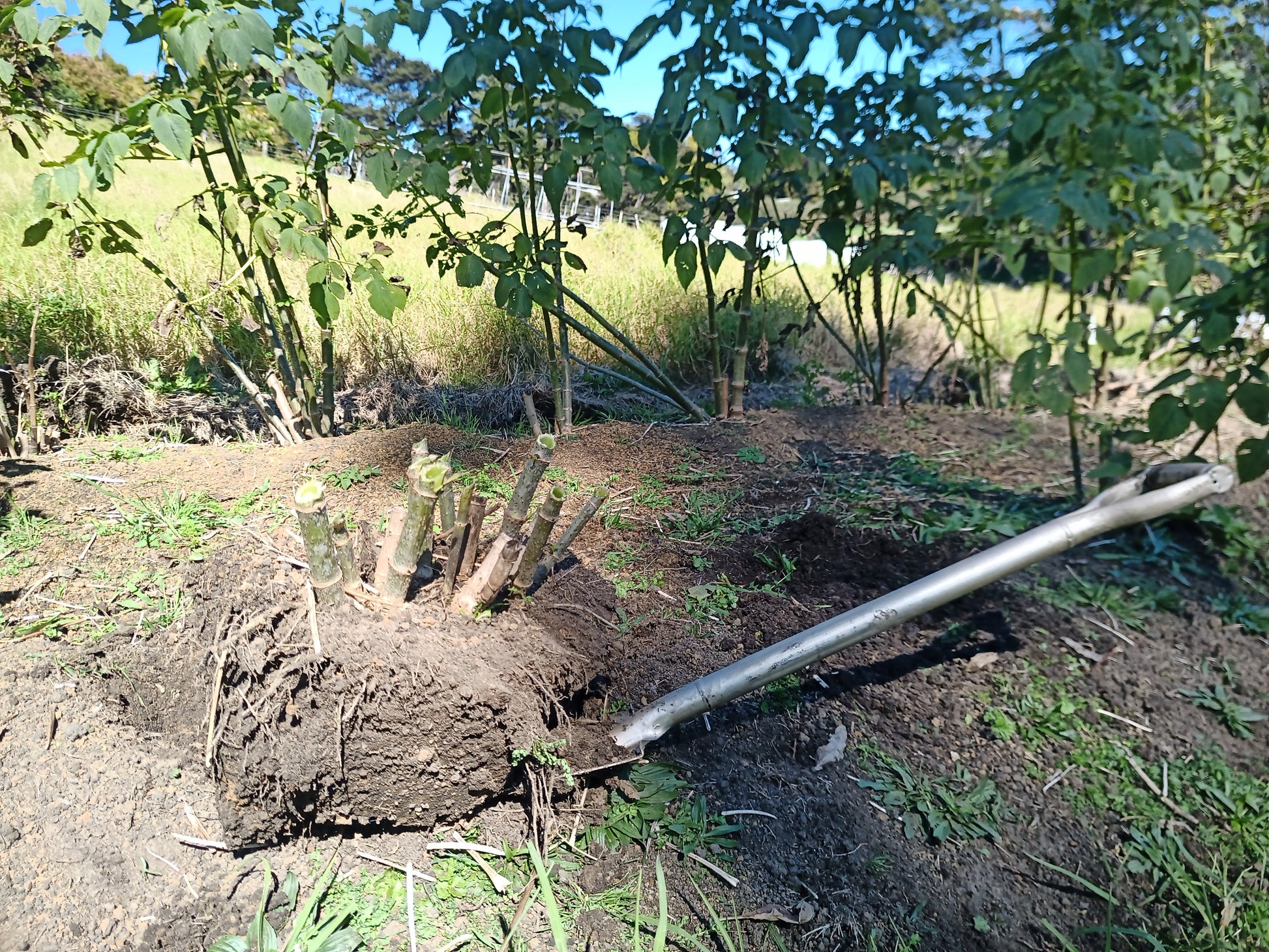 With all tree dahlias it is best to cut stems to the ground in October when flowering has finished. A chainsaw is ideal. This is an opportunity to inspect the general health of the tuber formation. Check for rot in central tubers and constricted stem growth. After three seasons it is best to divide the tuber clump. Tubers can be 4.5m long but don’t be afraid to cut them with a sharp spade to manageable size. The crown region with the eyes is most important to preserve for future propagation. A crowbar is useful to divide old tuber clumps. For very old tuber clumps a digger may be required.