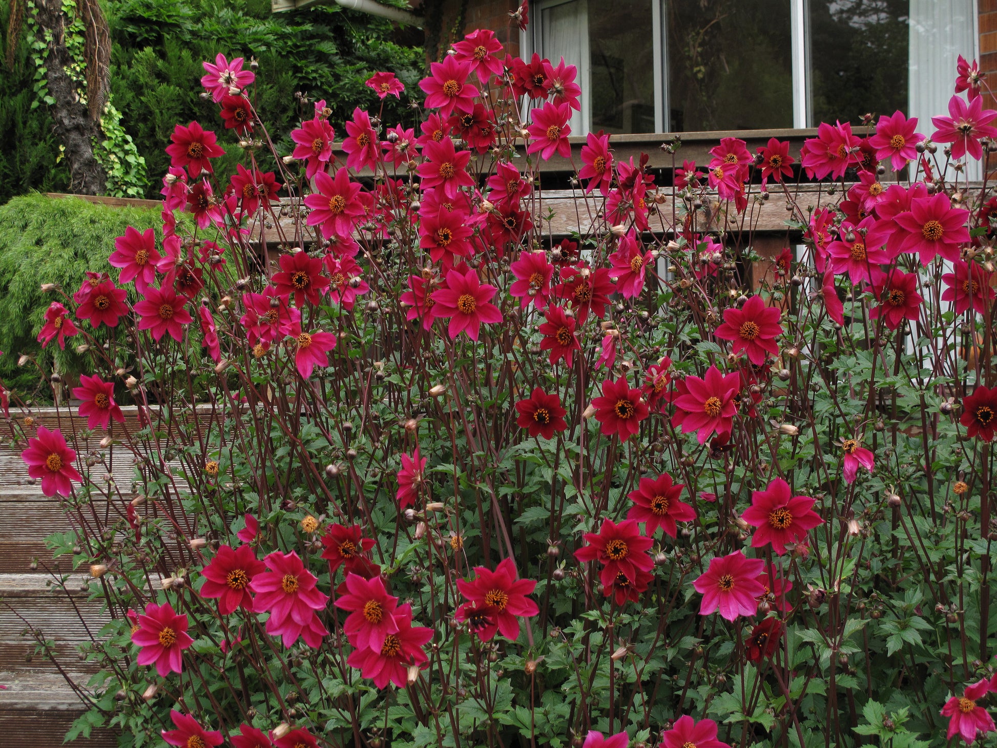 The ultimate bee magnet, homerun is a very floriferous, dark leafed maroon single. Plant in full sun for an abundance of flowers from November to late May in Auckland, NZ. Breed in Keith swampy clay in Waitakere, this cultivar is tolerant of wet soils and humidity. The black foliage also enables this cultivar to withstand full sun, mid summer when other dahlias tend to wilt. Deadhead regularly for continuous blooms. (Dr K Hammett, New Zealand, 2007)