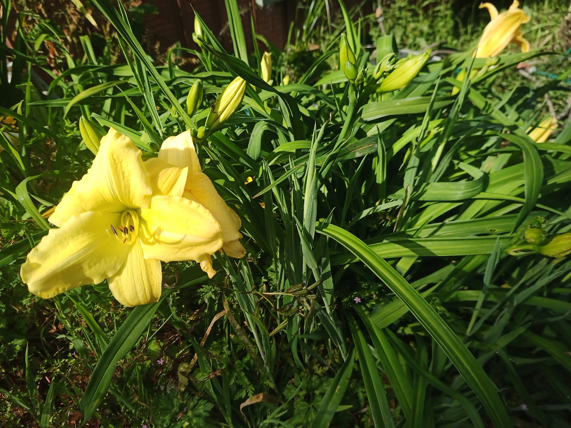 Striking Rich yellows flower with a pale lime throat. Repeated flowering from November to late March, here in Auckland.