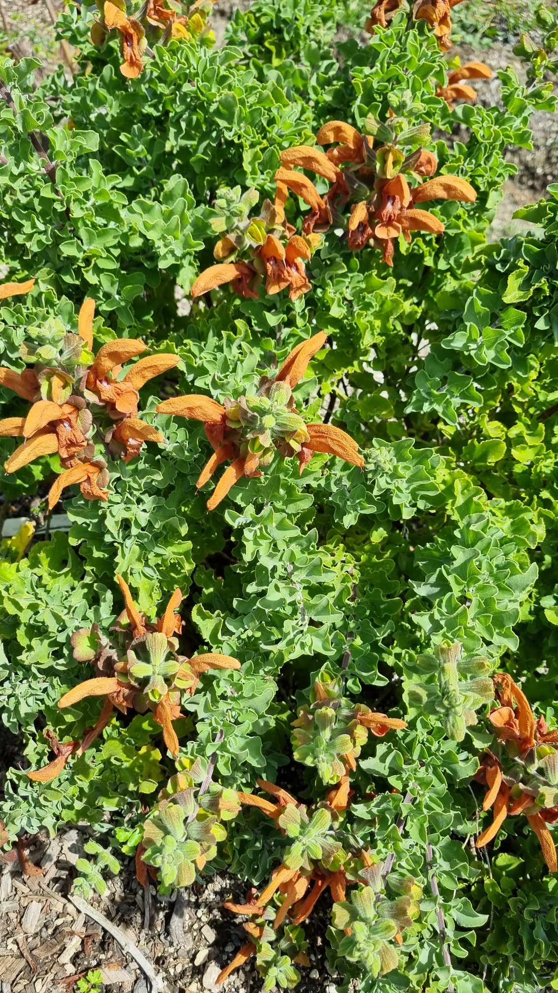 Does not require cutting back each season like other salvias. Evergreen dense crenate lime colored leaves with a leather like texture generally impervious to pests.