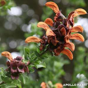 A South African beauty from the world famous Kistenbosch gardens. Rich bronze beak like flowers occur as clusters on sort stems. Slow growing compact bush habit growing to 1m wide and 1m tall after three years.